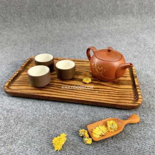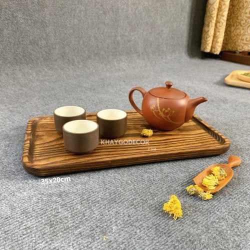 Khay trà bằng gỗ giá rẻ, khay đựng ấm chén 34x23cm gỗ tần bì nguyên khối