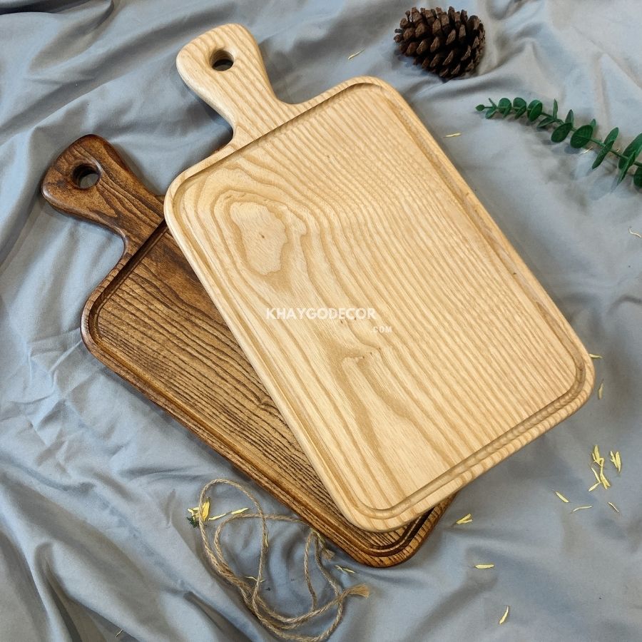 Thớt gỗ trang trí, khay gỗ tay cầm trơn 39x17cm gỗ tần bì tự nhiên